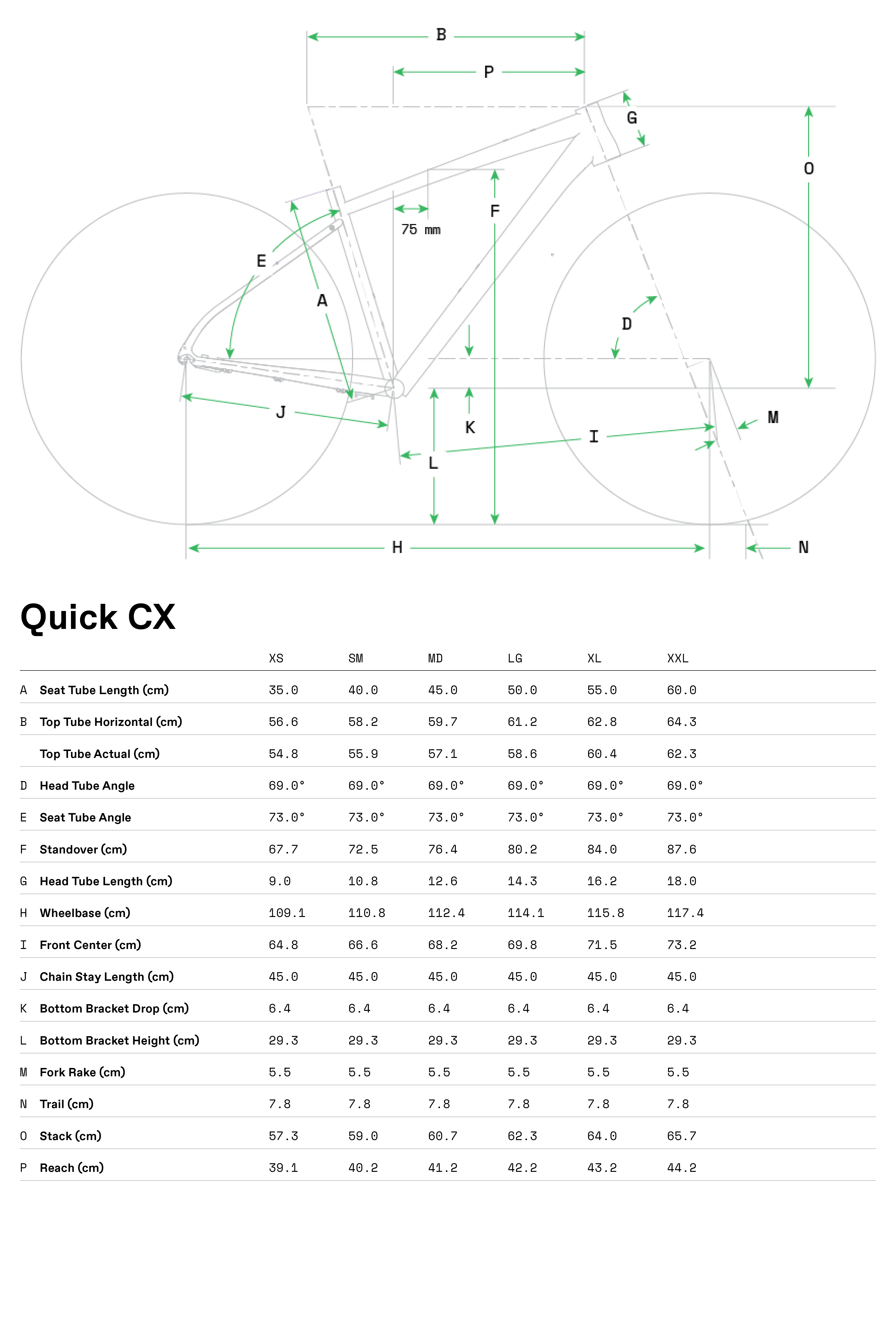 | Frame | Quick CX, SmartForm C3 Alloy, tapered head tube, Straightshot hidden cable routing, post mount disc, rack/fender mounts |