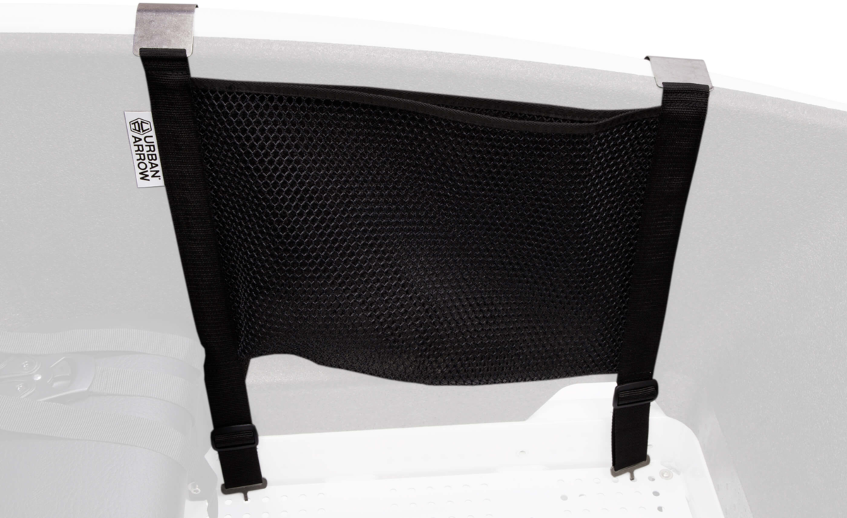 The ideal accessory for when you are carrying your chain lock or other stuff that you’d rather didn’t rattle around in the box. The net attaches to the bottom plate and the side of the box.